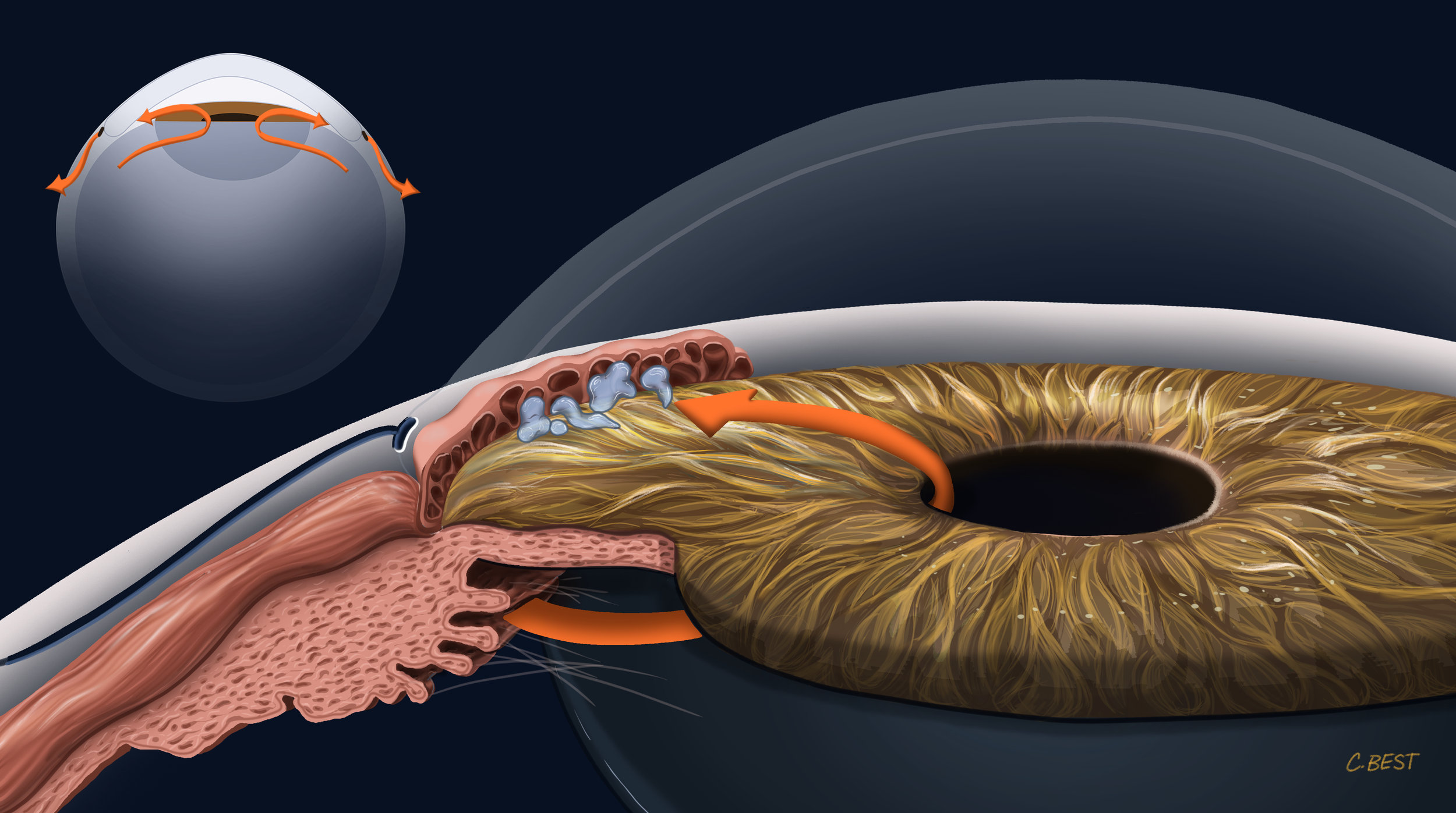 Added arrow follow‑through beneath the iris to clarify motion